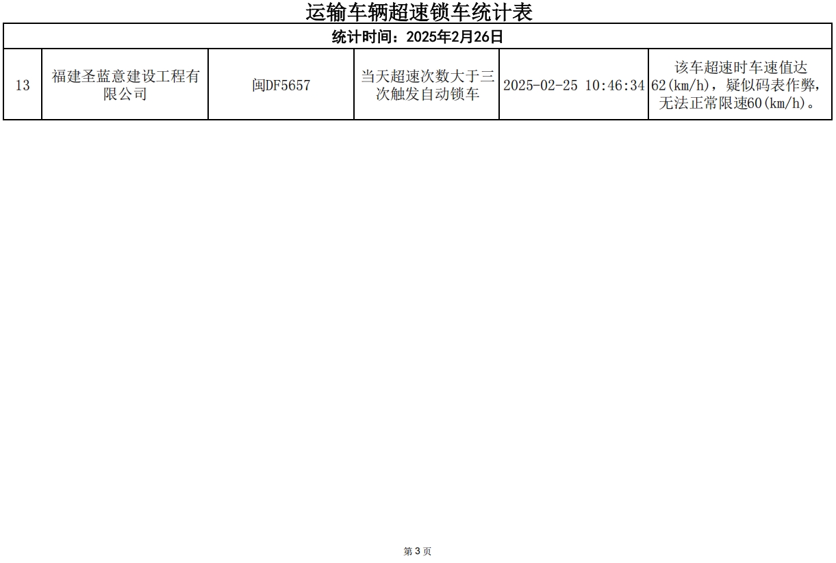 附件下载:运输车辆超速锁车统计表-20250226