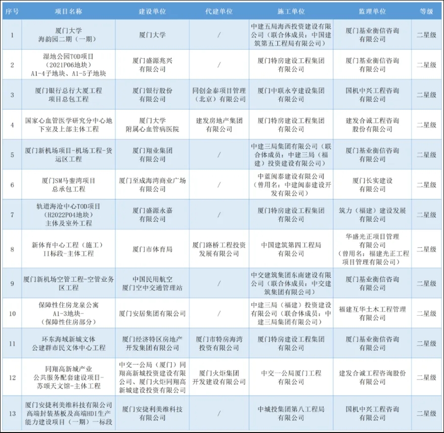 本次共有20个项目入选首批智慧工地星级项目,其中一星级项目4个、二星级13个、三星级3个。