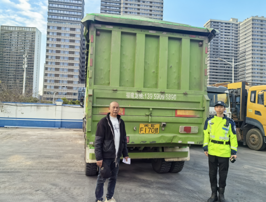 2026年2月5日,于海翔大道拦查闽E09128D运载建筑废土涉嫌超载,经过磅92.92吨(超重89%),由公安交警部门依法对违法车辆进行处罚。