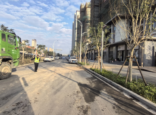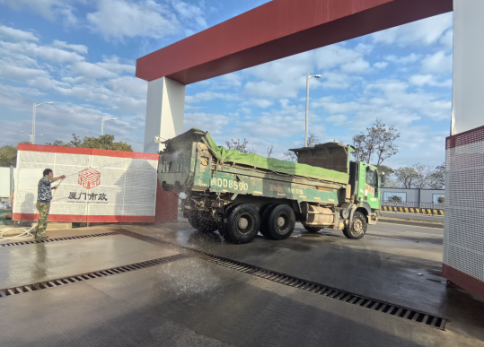 检查厦门海洋高新技术产业园区启动一期项目-鼓锣水系东侧市政道路工程、国贸樾云墅项目进行建筑废土回填作业出入口道路污染,督促施工单位立即整改严格落实文明施工等措施。